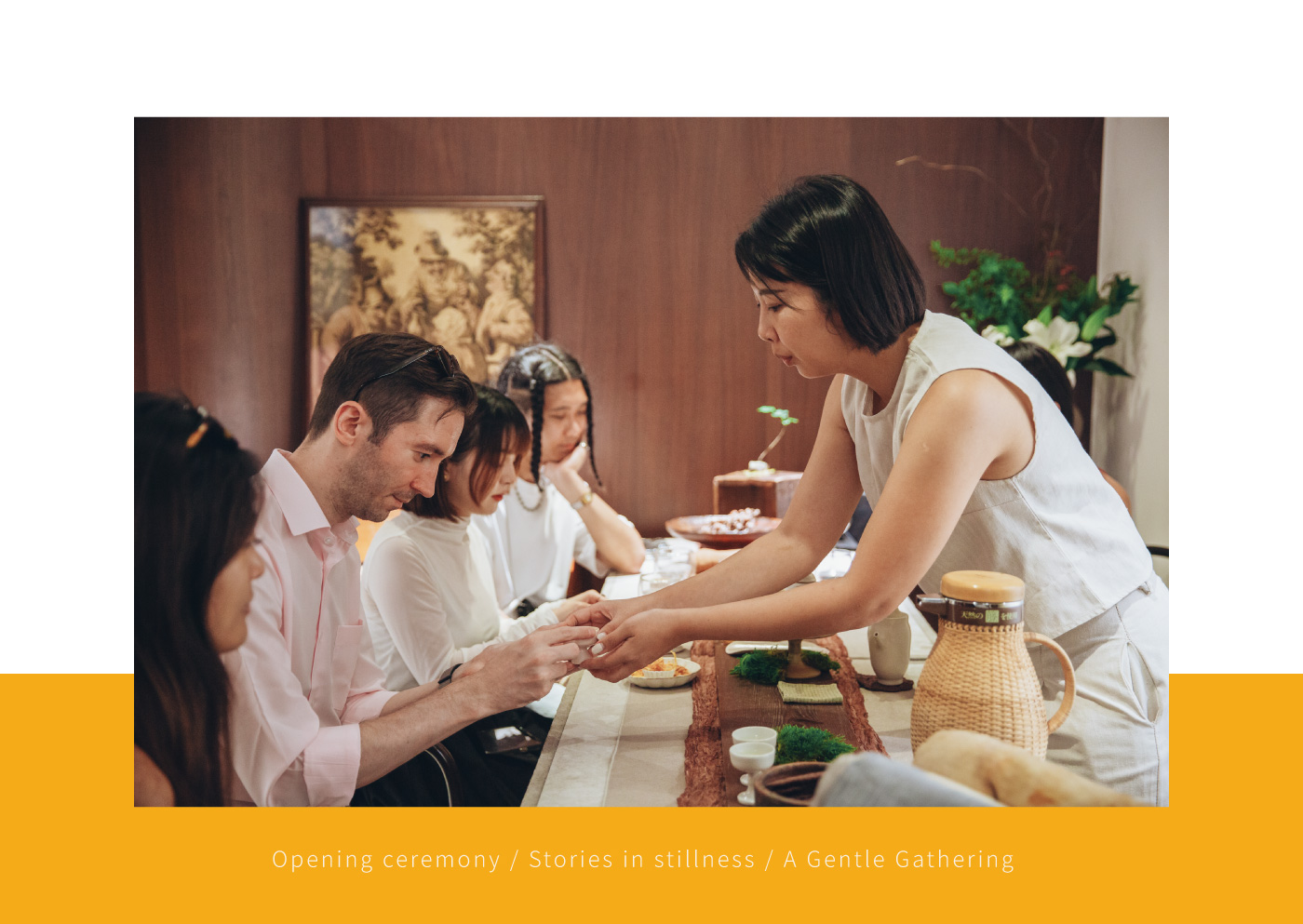 我們在紅磚老宅裡相遇,耳邊是談笑交織的聲音,眼前是靜靜訴說過往的老物。沒有繁複的安排,也沒有喧囂的聲響,只有時間緩緩流動的節奏。茶香與甜點香在空氣中瀰漫,包裹著彼此的故事與笑容。