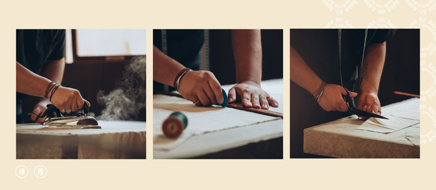鏽染的製作過程需要極大的耐心與細心,這不只是一門技術,更像是一場與時間對話的儀式。乾淨的棉麻布先經過手工去漿、浸泡,讓纖維完全敞開、回歸最原始的狀態,像是給布料一個深呼吸,準備迎接下一段旅程。