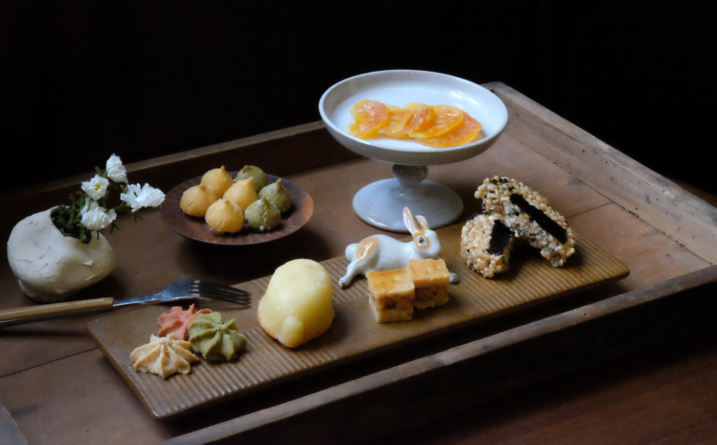 米香、海鹽奶油餅、珍珠小泡芙、季結果乾,以及紅玉紅茶。